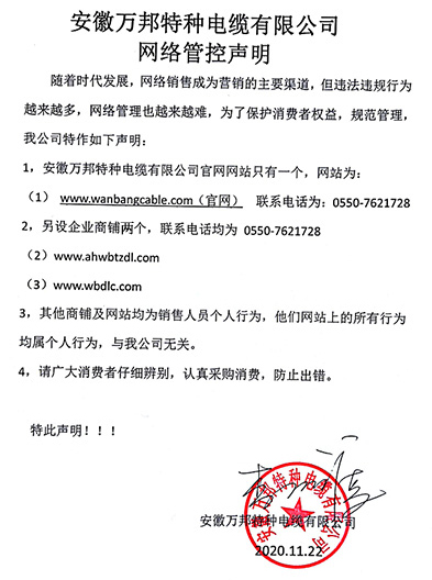 鄭重聲明:安徽萬邦特種電纜有限公司官方網(wǎng)站為:www_wanbangcable_com.zzzbg.cn,除此之外無任何子網(wǎng)站或合作網(wǎng)站,其余均為假冒偽劣。電話:0550-7621728 13485756353 地 址:安徽省天長市滁州高新技術(shù)產(chǎn)業(yè)開發(fā)區(qū)經(jīng)四路29號